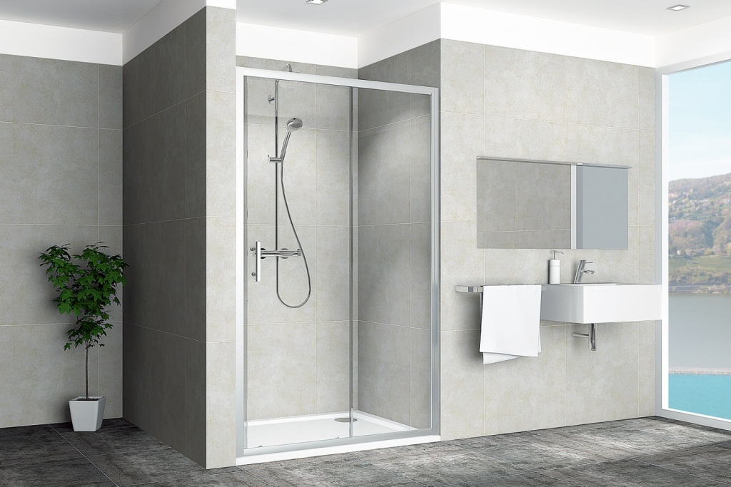 Výplň dveří je bezpečnostní sklo o tloušťce 5 mm. Výplň pevné části je bezpečnostní sklo o tloušťce 4 mm.